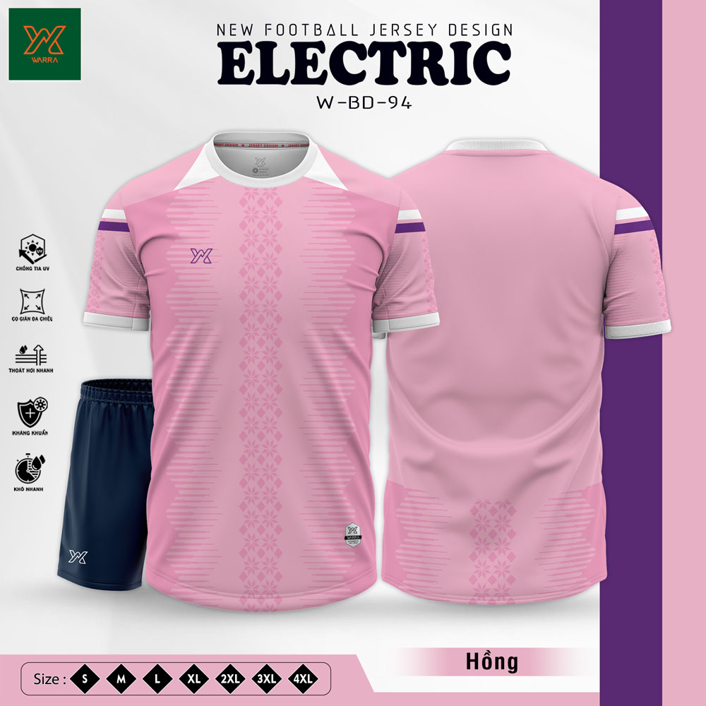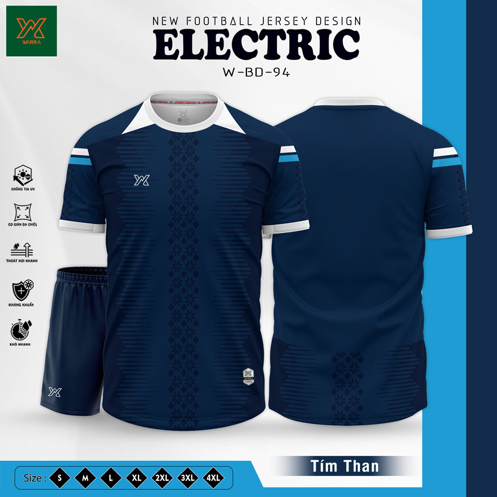 Mang sắc tím than chủ đạo – một gam màu vừa lịch lãm vừa mạnh mẽ, mẫu áo bóng đá ELECTRIC W-BD-94 không chỉ là trang phục thi đấu mà còn là tuyên ngôn về phong cách. Họa tiết sọc xanh dương – trắng trên tay áo và cổ áo tạo nên điểm nhấn tươi mới, giúp các cầu thủ nổi bật và cá tính trên sân.
