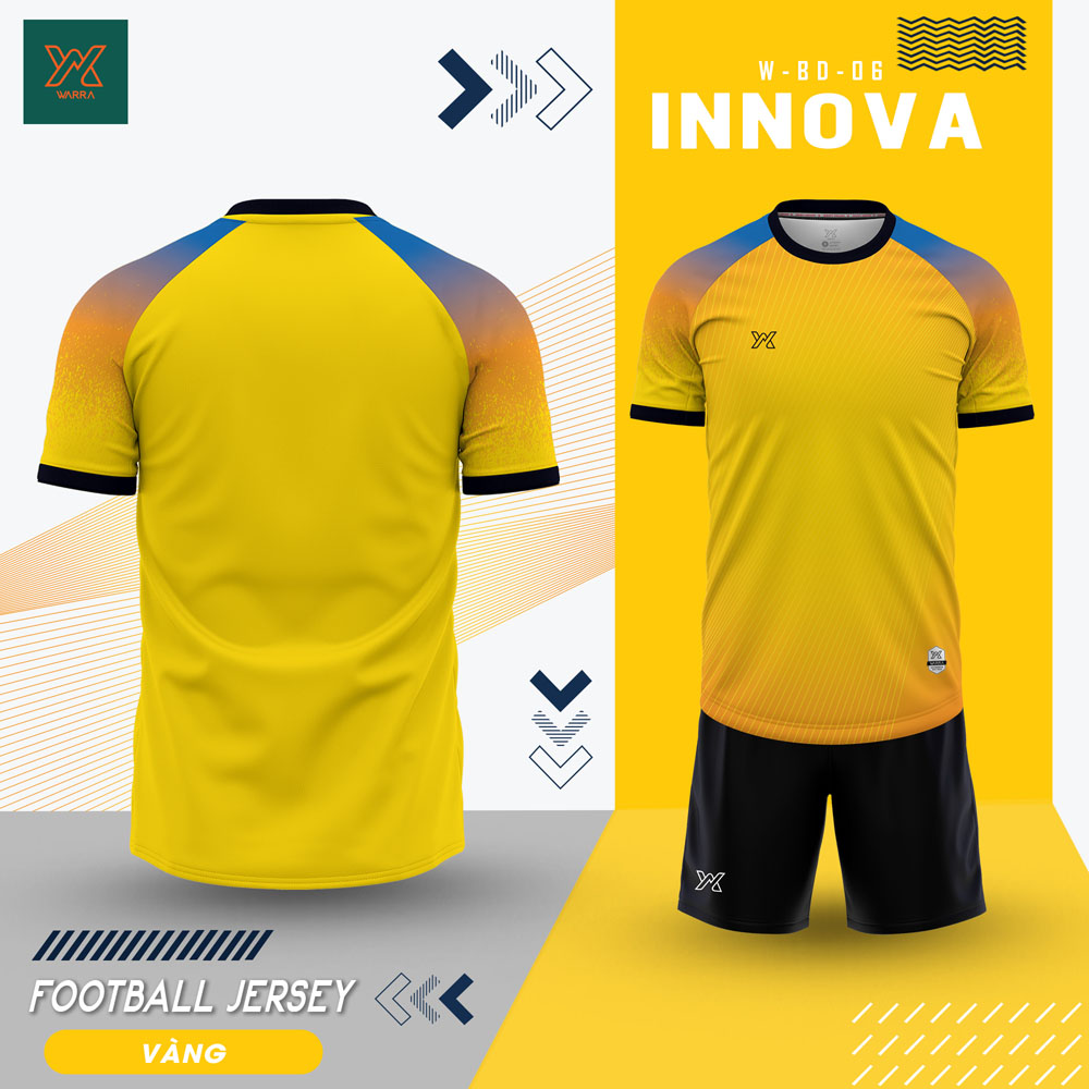 Mang sắc vàng rực rỡ đầy năng lượng, mẫu áo đá bóng WARRA INNOVA không chỉ là đồng phục thể thao mà còn là tuyên ngôn cá tính của người chơi. Thiết kế hiện đại, vải thể thao thoáng khí – lựa chọn tối ưu cho đội bóng của bạn.