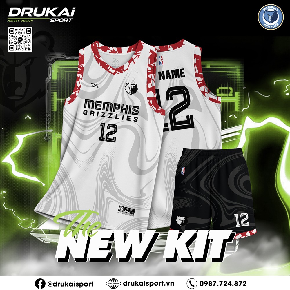 Bộ áo đấu bóng rổ Memphis Grizzlies mẫu 18 với tone trắng – đen phối cam hiện đại, chất liệu thoáng khí, thiết kế năng động, phù hợp trong thi đấu và thể thao ngoài trời.