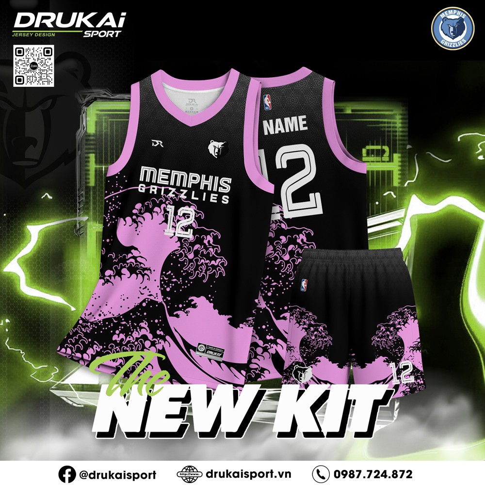 Mẫu áo đấu Memphis Grizzlies được thiết kế độc quyền bởi Drukai Sport, mang đến một sự kết hợp táo bạo giữa nghệ thuật truyền thống và phong cách thể thao hiện đại. Lấy cảm hứng từ tác phẩm “The Great Wave” của Hokusai, họa tiết sóng được cách điệu tinh tế, đại diện cho tinh thần chiến đấu, vươn lên mạnh mẽ của các vận động viên.