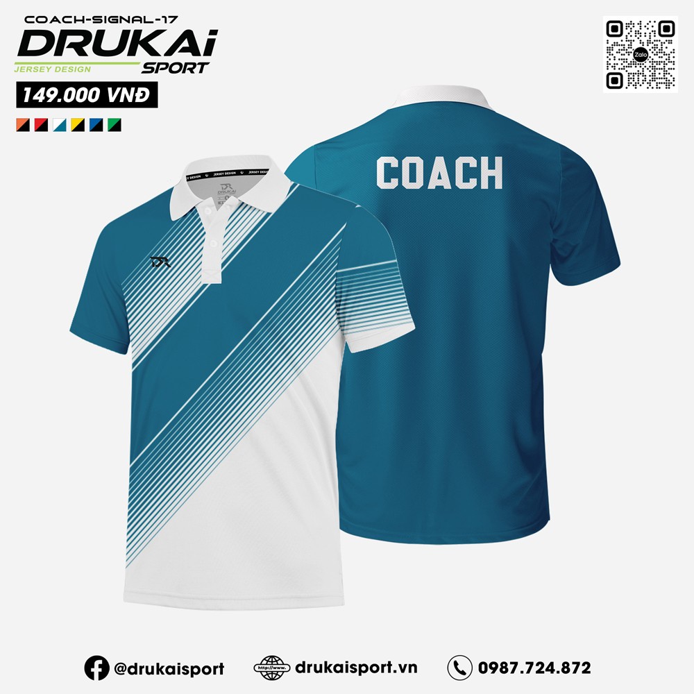 Với gam màu chủ đạo xanh ngọc lam kết hợp sắc trắng tinh tế, chiếc áo Coach SIGNAL 17 mang đến vẻ ngoài tươi mới, đầy sức sống và phù hợp với xu hướng thể thao hiện đại. Họa tiết sọc chéo trắng không chỉ tạo điểm nhấn phong cách mà còn khơi gợi cảm giác chuyển động mạnh mẽ – cực kỳ hợp với môi trường vận động.