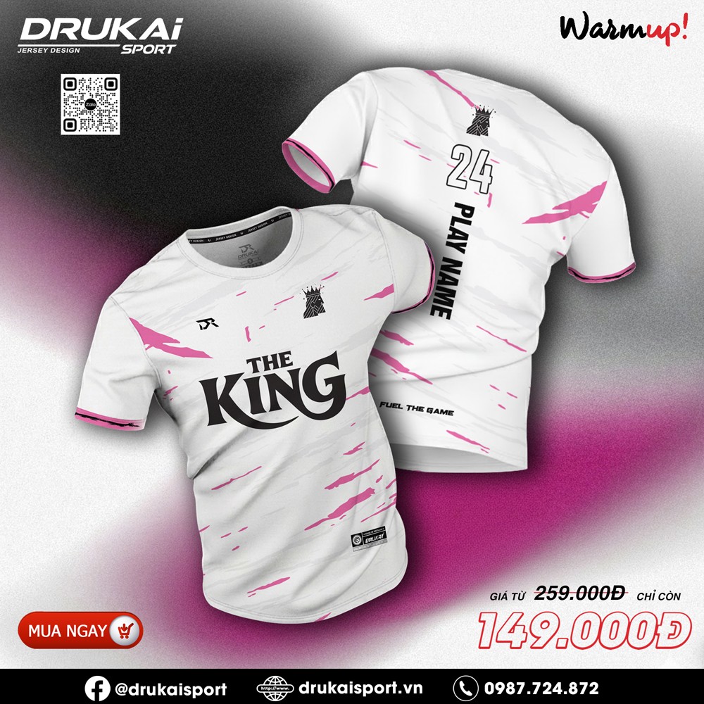 Hãy nhanh tay sở hữu chiếc áo DRUKAI THE KING trắng điểm hồng độc đáo để khẳng định phong cách thể thao cá tính của bạn ngay hôm nay!
