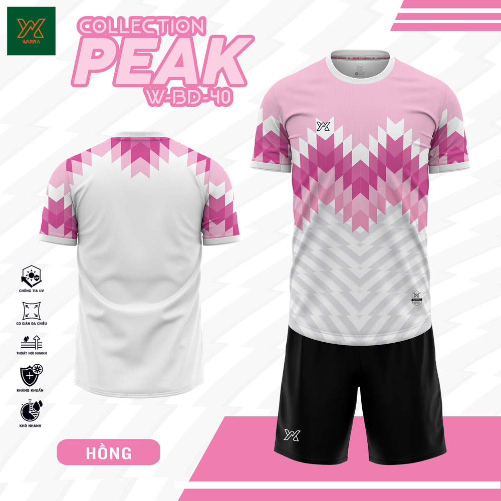 Mẫu áo trong bộ sưu tập PEAK W-BD-40 – phiên bản màu hồng gây ấn tượng ngay từ cái nhìn đầu tiên nhờ phối màu chuyển sắc gradation từ hồng nhạt đến hồng đậm. Màu hồng pastel kết hợp cùng trắng mang lại cảm giác nhẹ nhàng, hiện đại, dễ dàng phù hợp cho cả nam và nữ.