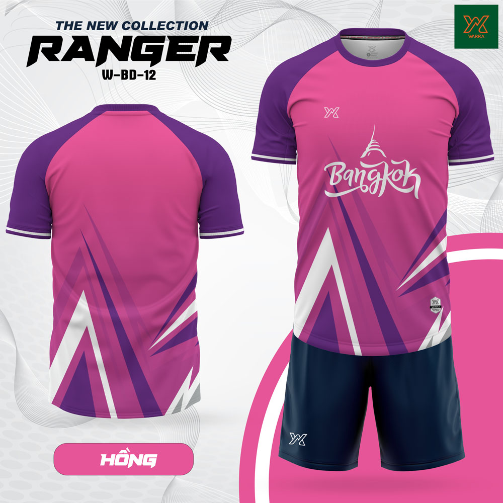 Áo thể thao Ranger W-BD-12 nổi bật với tông màu hồng chủ đạo, biểu hiện cho sự tươi trẻ, sáng tạo và tinh thần thể thao năng động. Điểm nhấn ấn tượng nằm ở sự phối hợp màu tím và trắng một cách khéo léo: