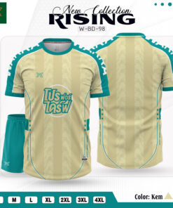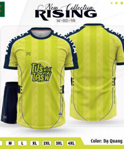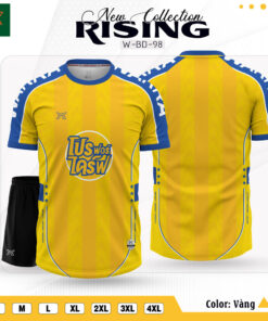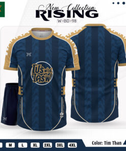 Chiếc áo Rising W-BD-98 của thương hiệu YX WARNA gây ấn tượng với phối màu chủ đạo xanh nhạt mát mắt – biểu tượng của sự năng động, tươi trẻ. Tông viền xanh navy ở tay áo và phần quần không chỉ tăng tính tương phản mạnh mẽ mà còn giúp tổng thể bộ đồ thêm phần cá tính, cuốn hút.