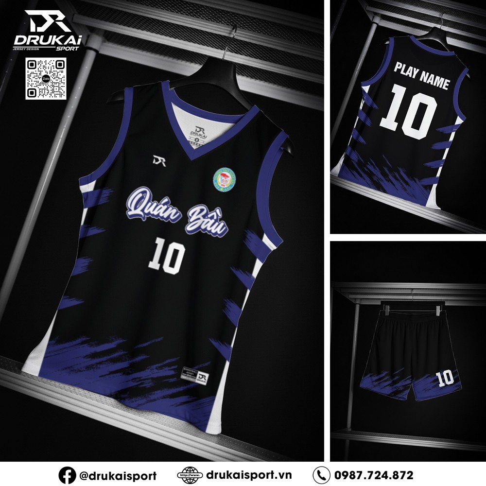 Thiết kế thể thao trẻ trung, hiệu ứng màu sắc hiện đại cùng chất liệu cao cấp – bộ đồ bóng rổ màu đen phối xanh than là lựa chọn hoàn hảo cho những vận động viên đam mê tốc độ và sự bức phá trên sân đấu.