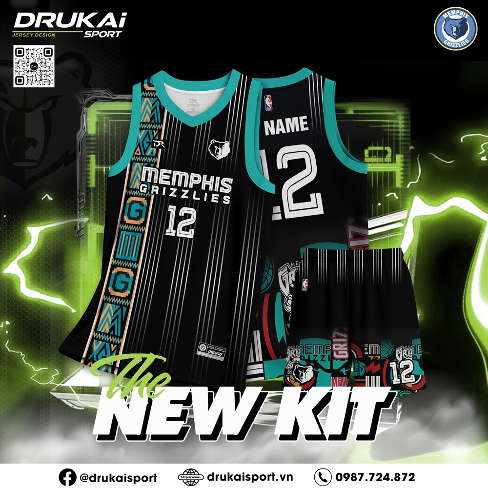 Bộ Quần Áo Bóng Rổ Memphis Grizzlies – Đen Xanh Ngọc Năng Động