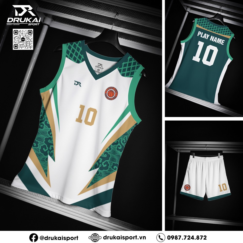 Bộ đồng phục thể thao mới từ Drukai Sport sử dụng gam màu xanh lá đậm (hunter green) chủ đạo – tượng trưng cho sự bền bỉ, năng động và tràn đầy sinh lực. Màu trắng tinh khiết tạo nên sự cân bằng trực quan, trong khi đường viền vàng kim gợi mở chiến thắng và cá tính mạnh của đội nhóm.