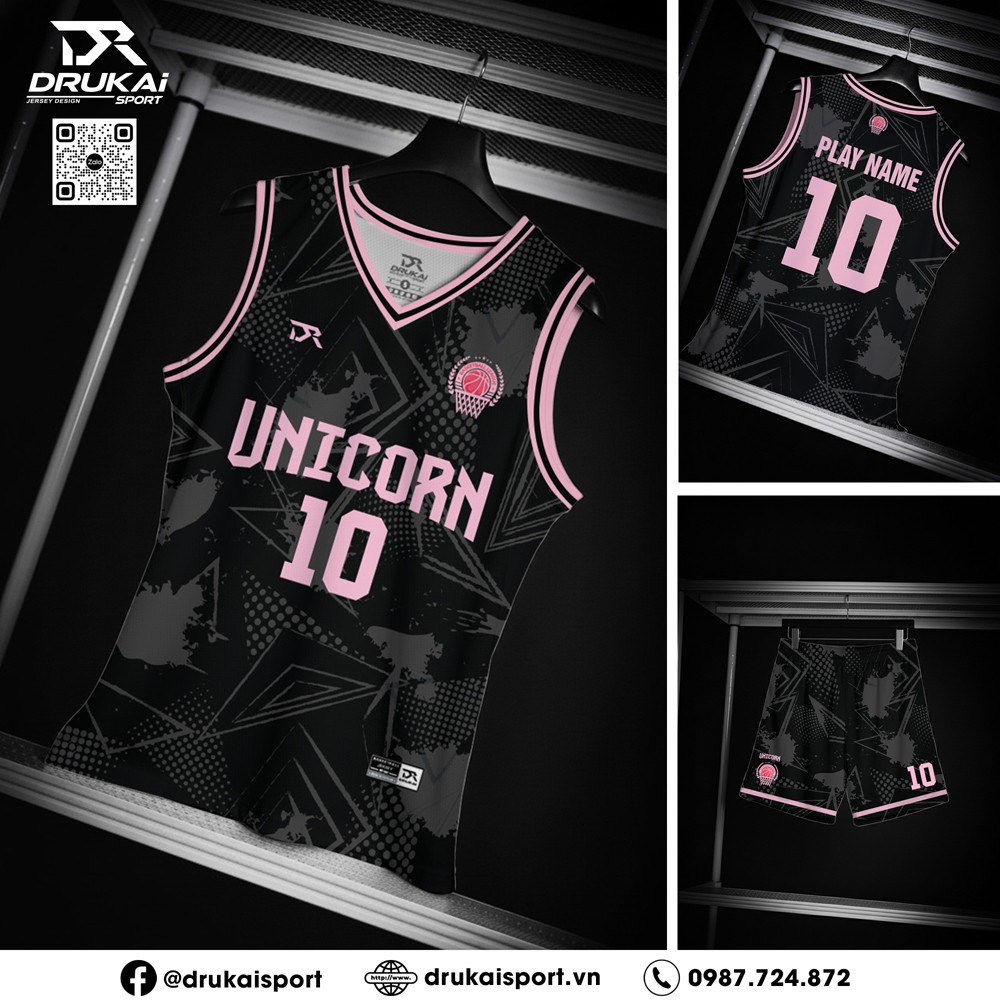 Mạnh mẽ – Cá tính – Tinh tế: Tất cả hội tụ trong mẫu jersey bóng rổ đen phối hồng pastel, tạo nên phong cách thể thao hoàn hảo cho mọi vận động viên.